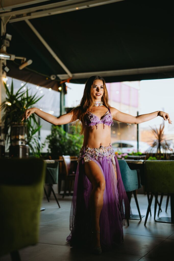 Originaria del Medio Oriente, su técnica se basa en aislamientos del torso y caderas, ondulaciones, vibraciones y un trabajo expresivo de brazos que mejora coordinación y conciencia corporal.